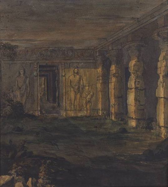 The interior of the rock-cut temple at Kondivate, near Bombay, India