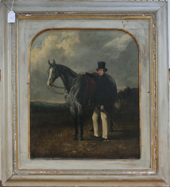 Full Length Portrait of a Gentleman standing beside a Racehorse