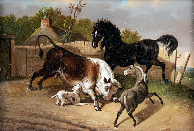 Staffordshire Bull Terrier Bull Baiting with Startled Horses