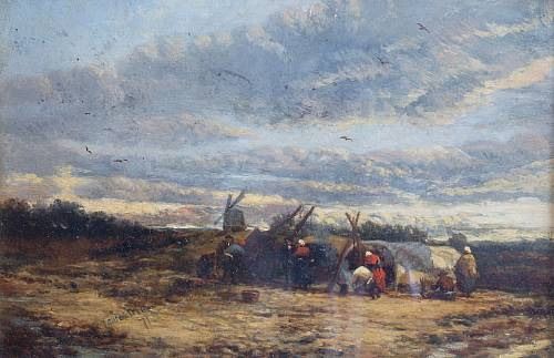 'Gipsy encampment with windmills, Suffolk'