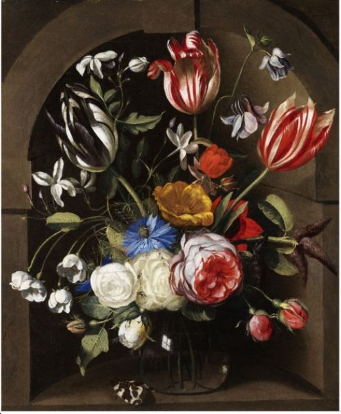 BLUMENSTILLEBEN IN EINER STEINNISCHE
