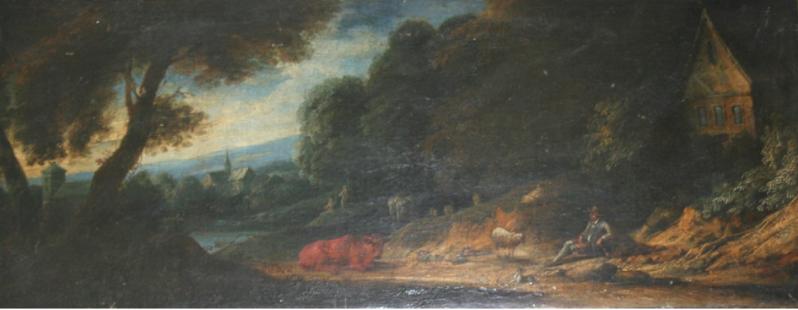 | PASTORAL SCENE WITH FIGURES AND ANIMALS BY A WOOD | |