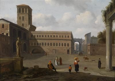 | View of a Roman palace, with ruins and figural staffage in the foreground | |