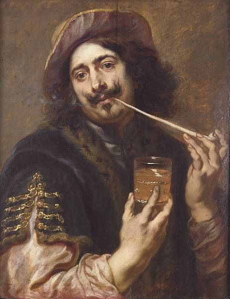 | Portrait of a gentleman, said to be Adriaen Brouwer, half-length, in a dark-blue fur-trimmed coat and a scarlet hat, smoking a p | |