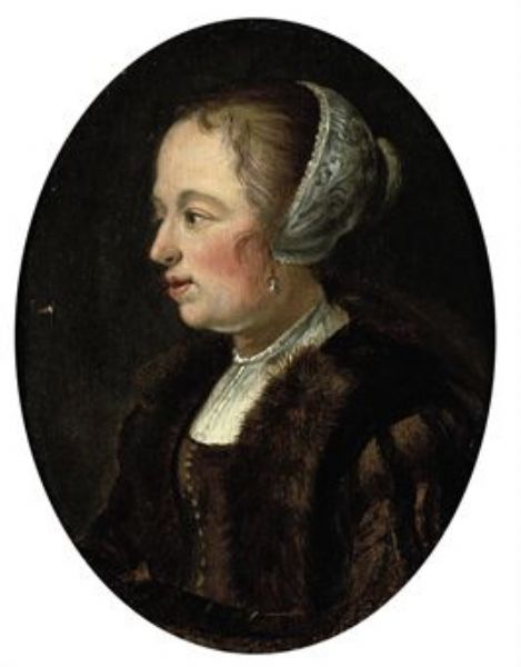 | Portrait of a lady, half-length, in a brown dress with a fur-trimmed coat and lace cap | |
