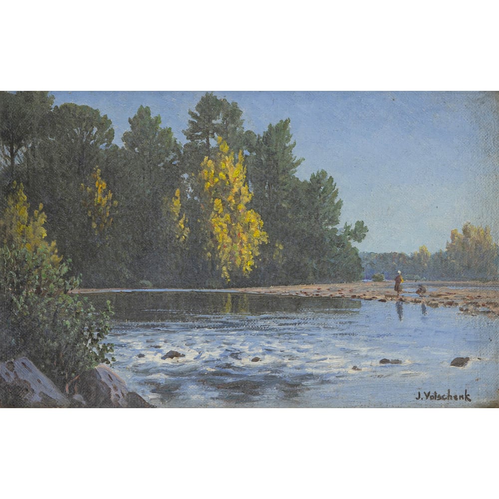 30,5 by 40 by 6cm including frame, inscribed 'Leeuw River Swellendam' in another hand on the reverse | |