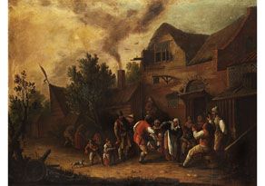 BAUERNTANZ VOR EINEM WIRTSHAUS