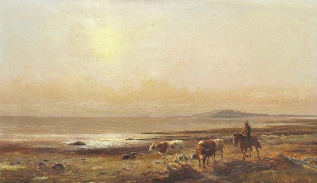 | Stockman and Cattle by the Water at Sunset (Lake Corangamite) | |