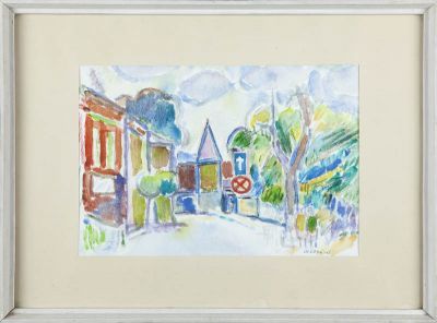 Pejzaż z drogą i kościołem