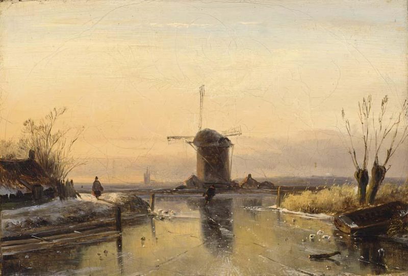 | FIGURES IN A WINTER LANDSCAPE, A WINDMILL IN THE DISTANCE | |