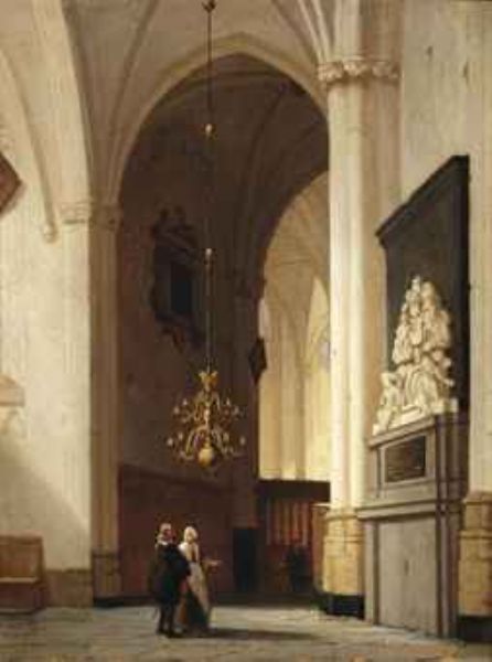 Figures in a church interior