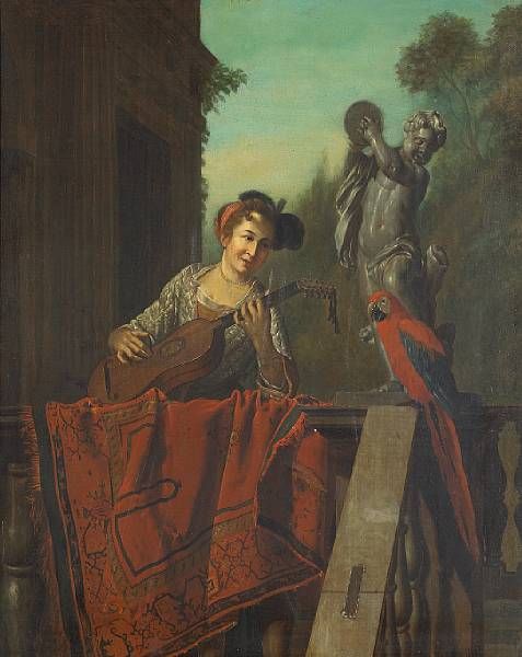| A guitar player and her parrot; A Turkish gentleman at a balustrade | |