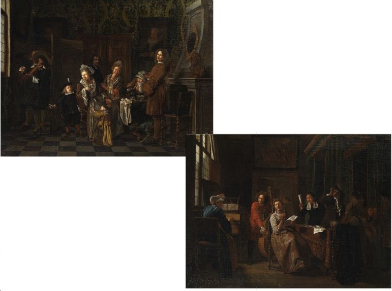 Gemäldepaar TISCHGESELLSCHAFTEN BEI HAUSMUSIK
