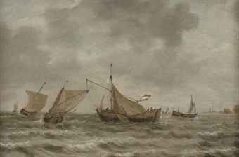 Dutch sailing vessels in choppy water