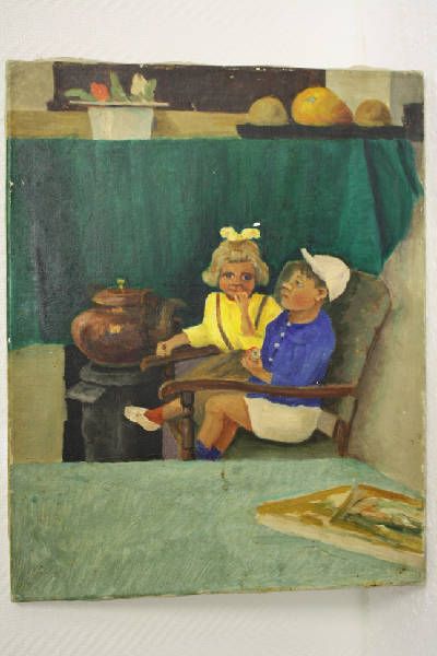 Jongen en meisje op een stoel, Zittende jongen