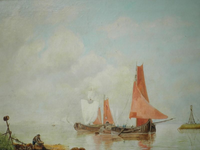 River landscape with sailing ships