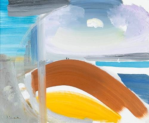 FARM BUILDINGS AMONGST TREES, WITH A FARMER