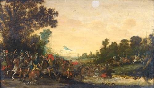 A cavalry skirmish at a river crossing