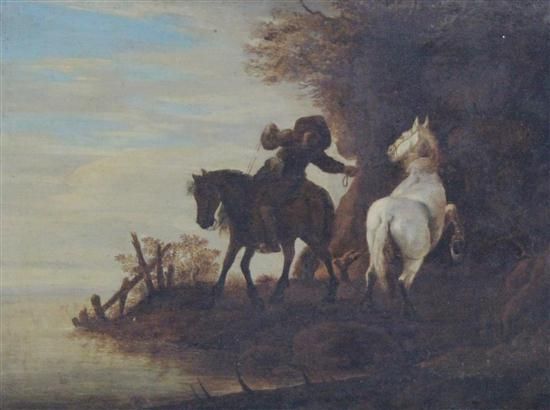 Horseman beside a lake