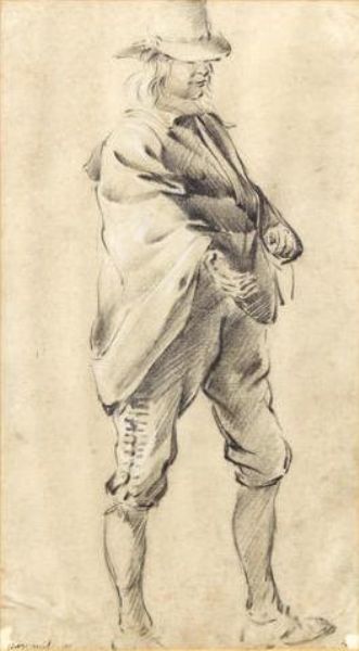 | Studies of a cloaked gentleman, another of a leg and riding boot and another of a man smoking | |