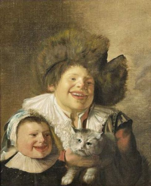 Jeune garçon et fillette au chat