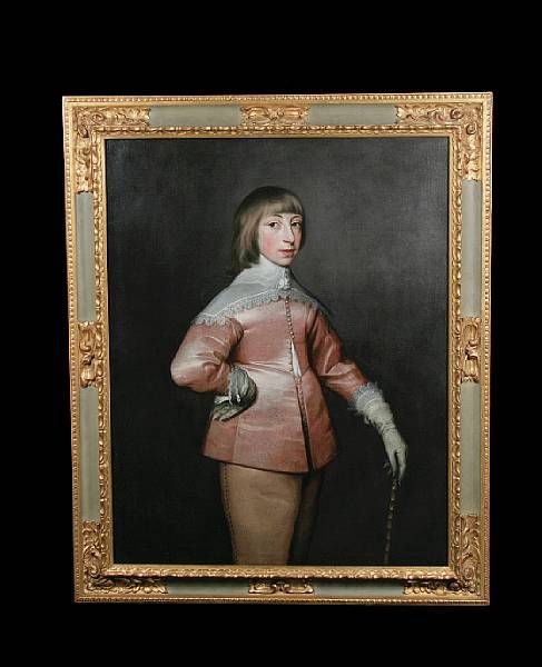 | Portrait of a young gentleman, three-quarter length, in a pink satin costume with a white lace collar, holding a cane | |