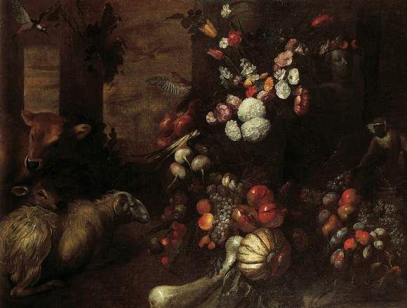 NATURE MORTE DE FRUITS ET ANIMAUX