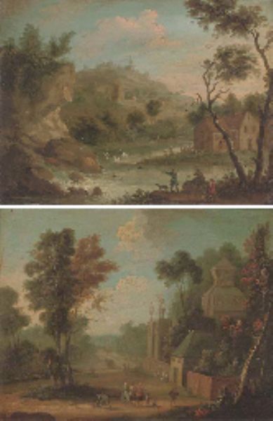 | A landscape with figures on a track by a country house; and A mountainous river landscape with hunters by a waterfal | |