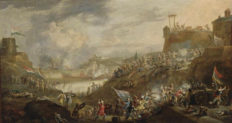 | A BATTLE SCENE BETWEEN DUTCH AND TURKISH SOLDIERS WITH ARTILLERY | |