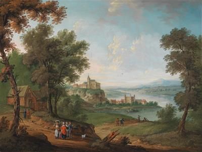 Vast river landscape with rural staffage