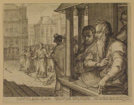 | Lycurgius discoursing on the relationship between good and evil, 1596. | |