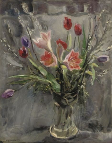 A still life with tulips and amaryllises