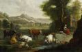 Bäuerin beim Melken auf Weide