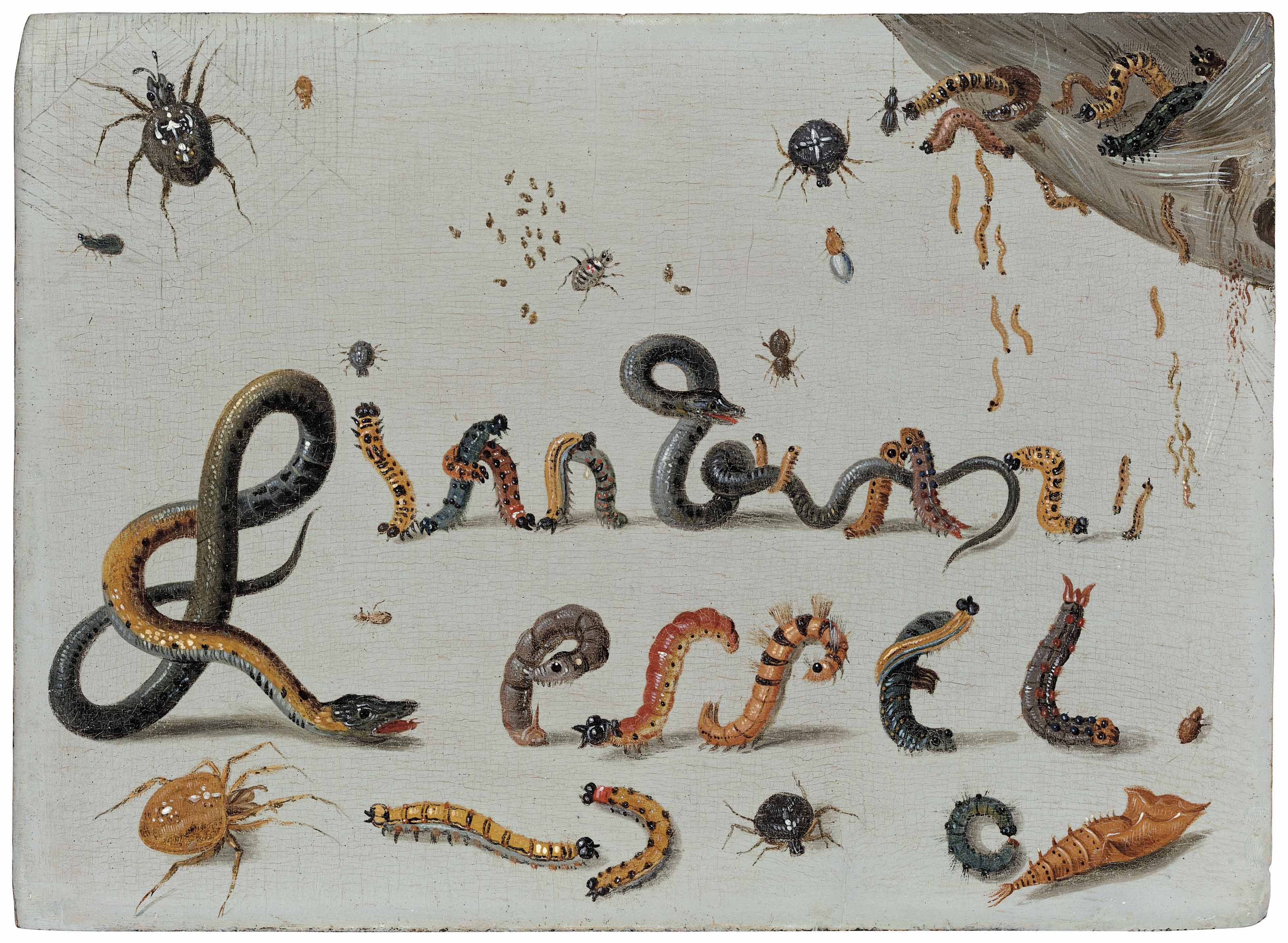 | Spiders, snakes and caterpillars entwined to spell the artist's name | |