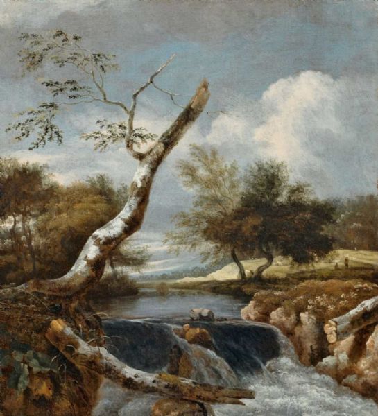 LANDSCHAFT MIT ABGEBROCHENEM BAUM UND WASSERFALL