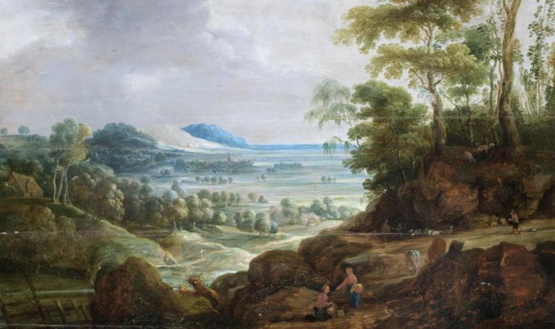 Gleaners and herdsmen tending their flocks with an open landscape beyond