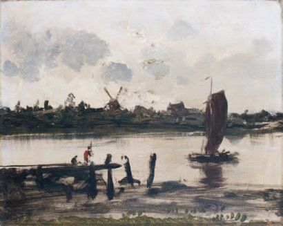 PAYSAGE FLUVIAL AU BATEAU ET AU MOULIN