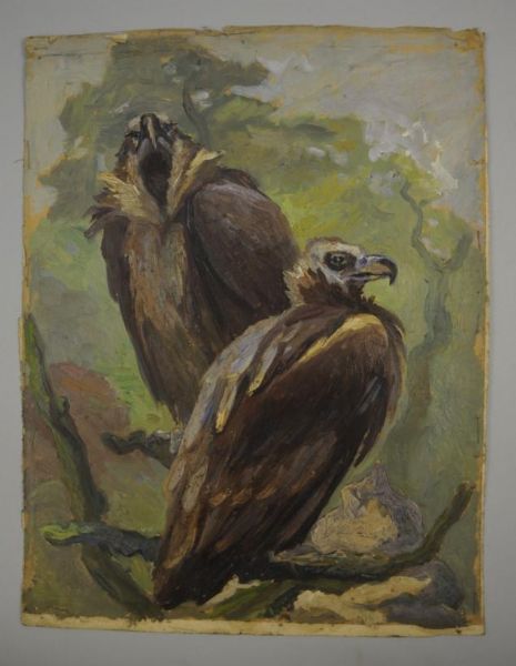 Réunion de trois huiles et trois dessins préparatoires, figurant des animaux.