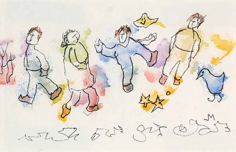 Untitled - 4 Dancing People and a Bird