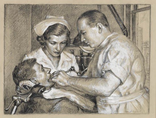 Dr. Ross with Paul Cadmus (Cadmus at the dentist)..