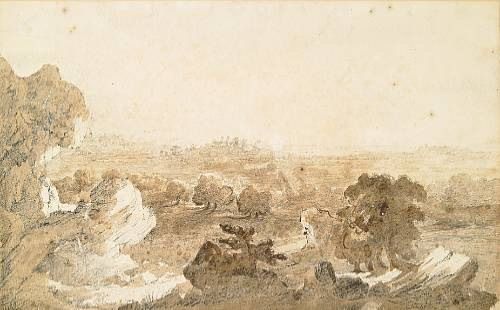 | An Extensive Landscape with Trees and Rocks in the Foreground | |