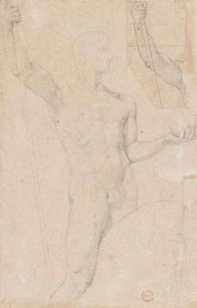 | Etude pour L'Apothéose de Napoléon pour le plafond de l'Hôtel de Ville de Paris, Reprise du bras sur une feuille collé en haut à | |