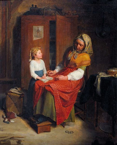 Interieur mit Grossmutter und Enkelin.