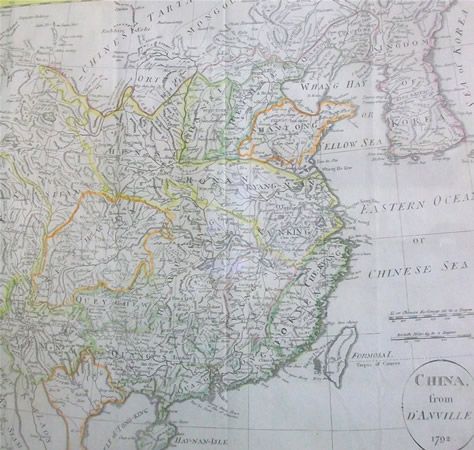 Map of China showing the Eastern Ocean and the Chinese Sea