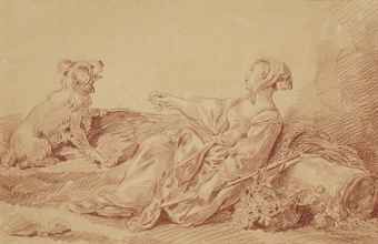 Bergère assise avec son chien