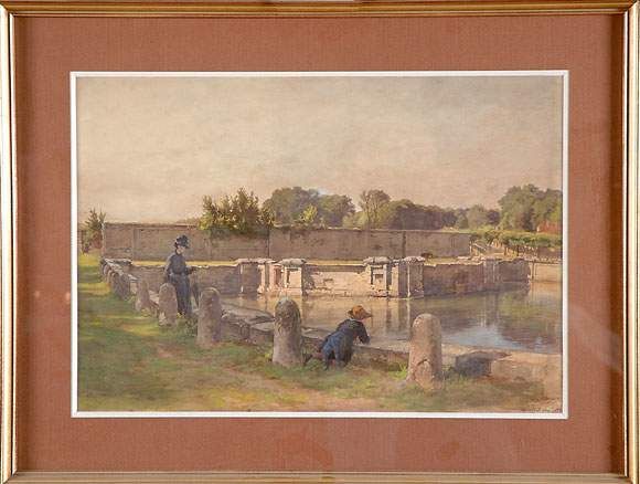 Personnages au bord d'un bassin