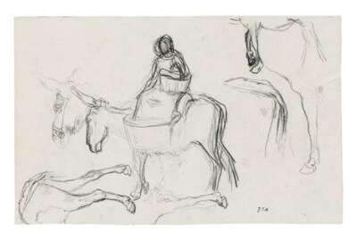 | Studies of a woman riding a donkey, with separate studies of a donkey | |