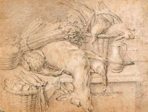 Nature morte de gibier Pierre noire, rehauts de blanc