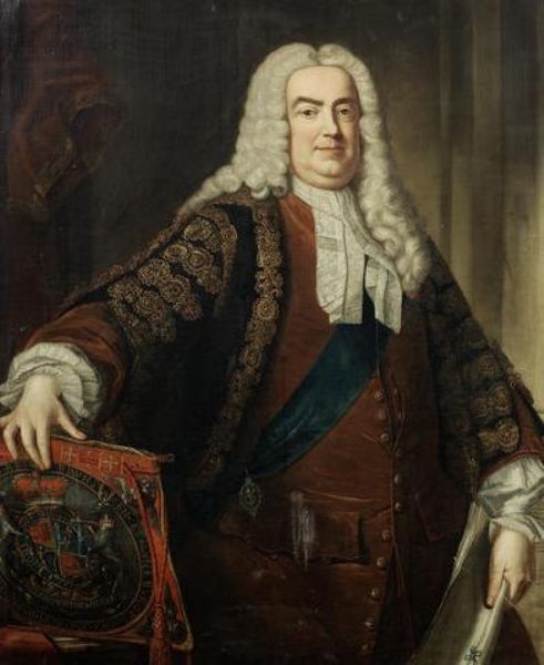| Portrait of Sir Robert Walpole, 1st Earl of Orford, three-quarter-length, in the robes of the Lord Chancellor and the sash of th | |