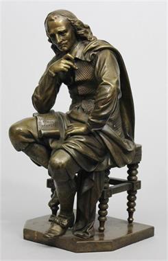 | Sitzender Denker (wohl Pierre Corneille) mit Schriftrolle und lateinischer Inschrift. Bronze mit gold-brauner Patina (l. Alterss | |